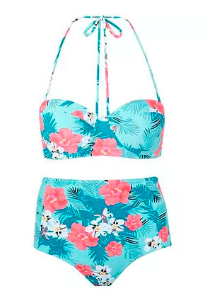 3. Diseño. Elige el diseño de tu vestido de baño con base en tu tipo de cuerpo. Si tienes por ejemplo caderas anchas opta por un vestido de baño que lleve la atención arriba, busca vuelos, flecos, o estampados. Para esconder los rollitos escoge un diseño tankini. Si quieres resaltar cintura opta por vestidos de baño fruncidos o con metidos en la cintura. Los de cuello halter disminuyen la parte superior mientras que los strapless alargan horizontalmente esa área.
