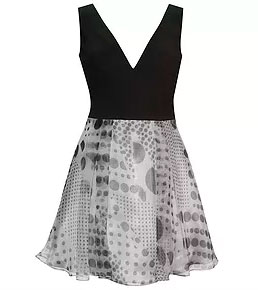 3. Vestido bloque de color. Si eliges un vestido cuya atención está en la parte inferior, todo el peso se irá a tu cadera haciéndola lucir más grande, con mucha más razón si es negro arriba.